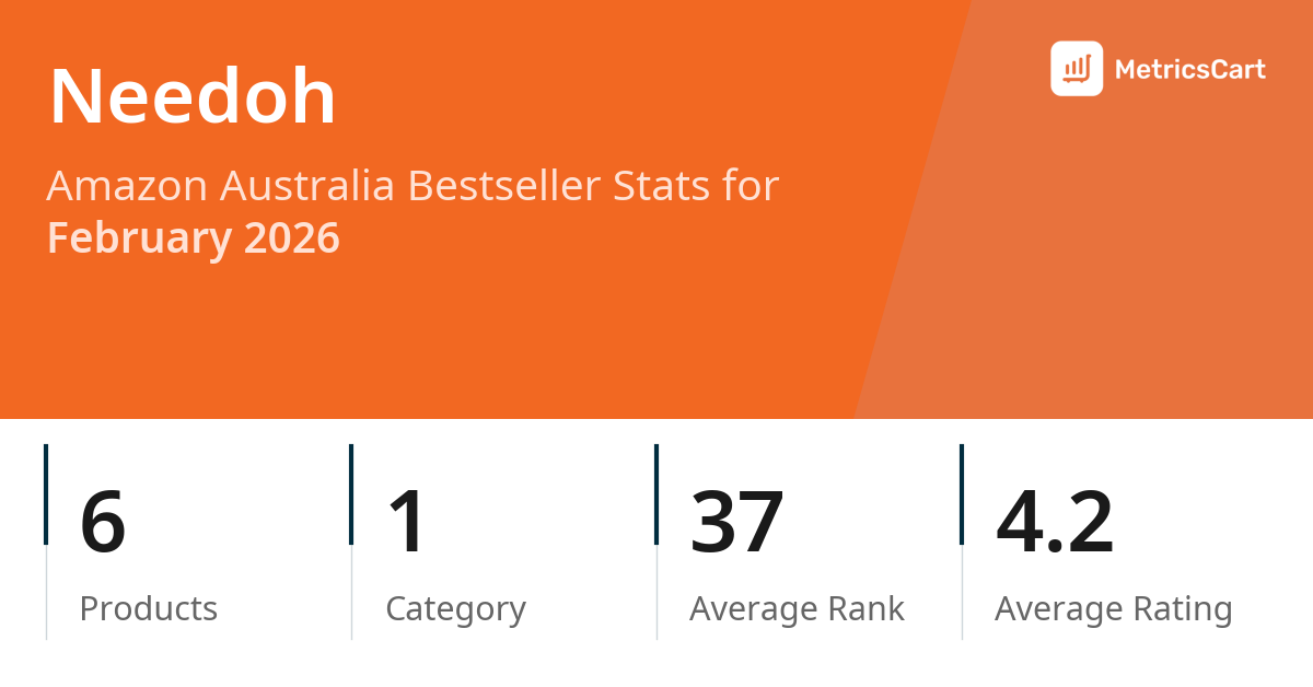 In February 2026, Needoh appeared on Amazon Australia's bestseller lists with 6 unique products across 1 category. These products appeared in the category Toys & Games. The brand's products on the bestseller lists were priced between $7.95 and $20.90, with an average price of $12.11. These bestselling products maintained an average rating of 4.2 based on 1K total ratings from customers who purchased products that appeared on the bestseller lists.