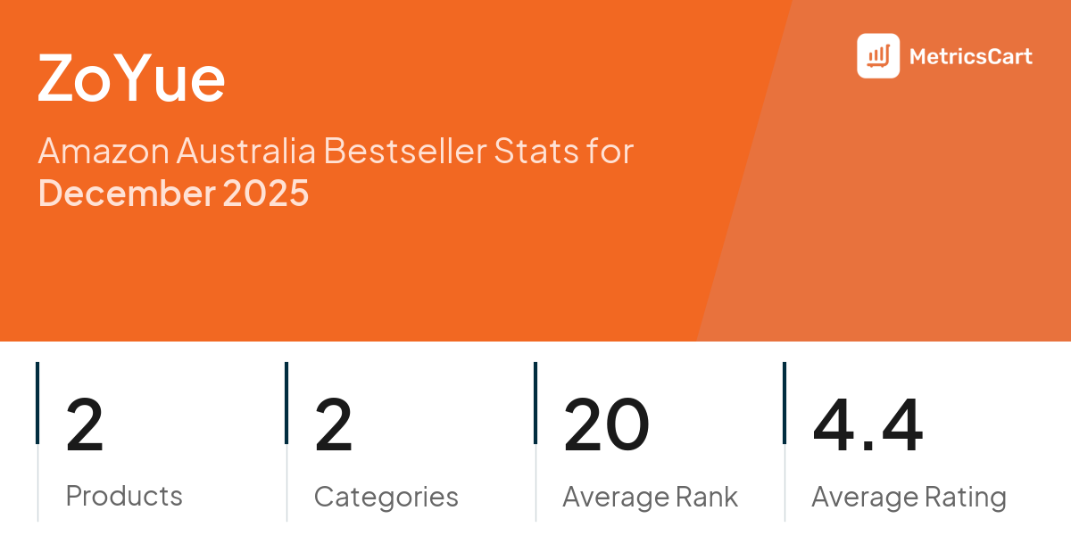 In December 2025, ZoYue appeared on Amazon Australia's bestseller lists with 2 unique products across 2 categories. These products appeared in categories including Home and Stationery & Office Products. The brand's products on the bestseller lists were priced between $59.49 and $79.99, with an average price of $69.80. These bestselling products maintained an average rating of 4.4 based on 659 total ratings from customers who purchased products that appeared on the bestseller lists.