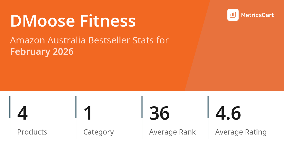 In February 2026, DMoose Fitness appeared on Amazon Australia's bestseller lists with 4 unique products across 1 category. These products appeared in the category Sports, Fitness & Outdoors. The brand's products on the bestseller lists were priced between $22.99 and $49.99, with an average price of $27.27. These bestselling products maintained an average rating of 4.6 based on 35K total ratings from customers who purchased products that appeared on the bestseller lists.
