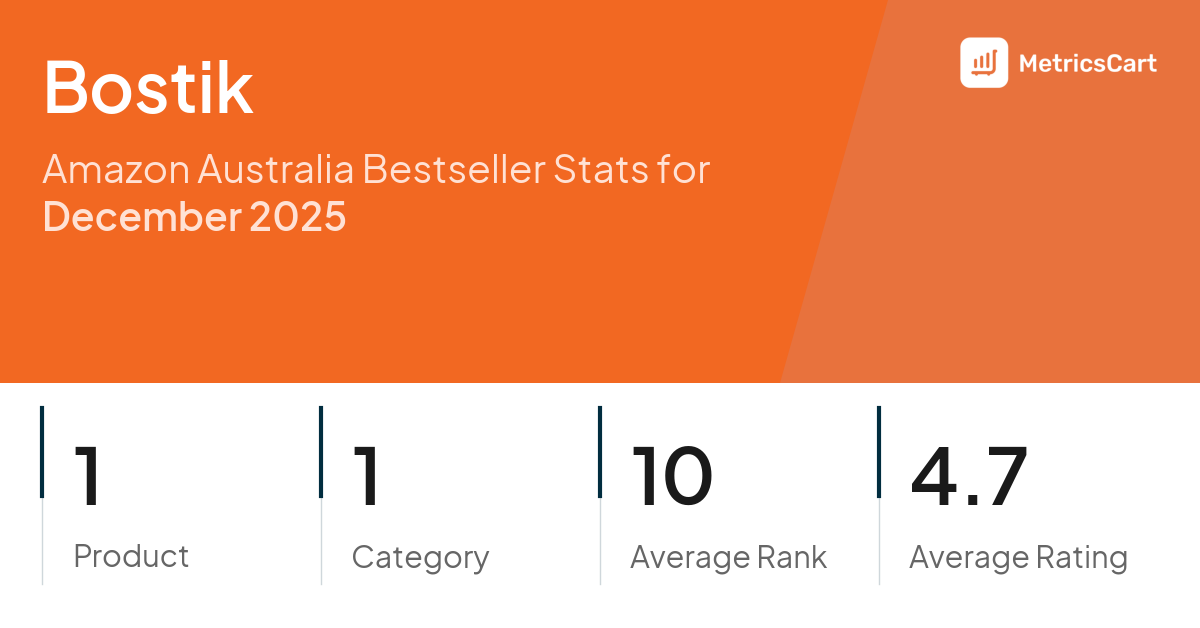 In December 2025, Bostik appeared on Amazon Australia's bestseller lists with 1 unique product across 1 category. These products appeared in the category Stationery & Office Products. The brand's products on the bestseller lists were priced between $2.40 and $3.00, with an average price of $2.97. These bestselling products maintained an average rating of 4.7 based on 8K total ratings from customers who purchased products that appeared on the bestseller lists.