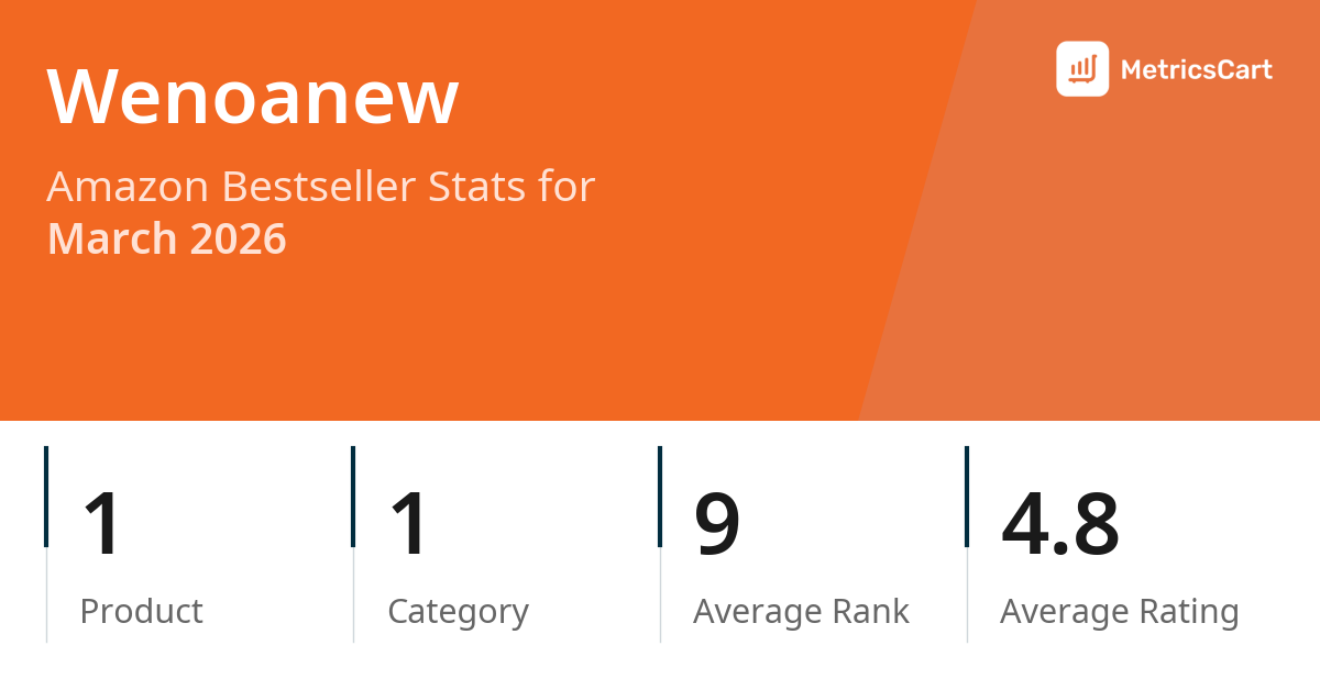 In March 2026, Wenoanew appeared on Amazon's bestseller lists with 1 unique product across 1 category. These products appeared in the category Collectible Coins. The brand's products on the bestseller lists had an average price of $9.99. These bestselling products maintained an average rating of 4.8 based on 13 total ratings from customers who purchased products that appeared on the bestseller lists.
