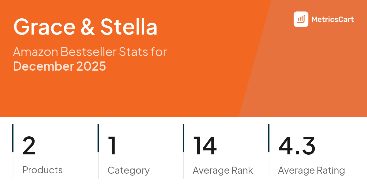 In December 2025, Grace & Stella appeared on Amazon's bestseller lists with 2 unique products across 1 category. These products appeared in the category Beauty & Personal Care. The brand's products on the bestseller lists were priced between $21.95 and $23.95, with an average price of $22.95. These bestselling products maintained an average rating of 4.3 based on 48K total ratings from customers who purchased products that appeared on the bestseller lists.