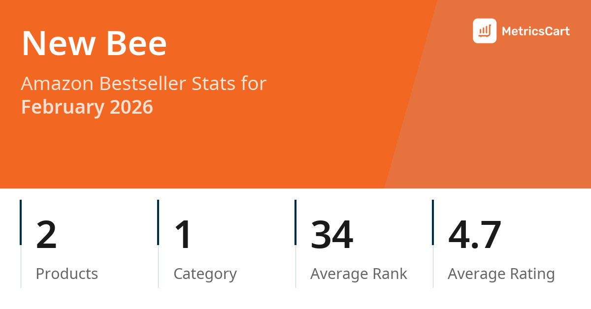 In February 2026, New Bee appeared on Amazon's bestseller lists with 2 unique products across 1 category. These products appeared in the category Musical Instruments. The brand's products on the bestseller lists were priced between $7.99 and $14.39, with an average price of $10.18. These bestselling products maintained an average rating of 4.7 based on 31K total ratings from customers who purchased products that appeared on the bestseller lists.