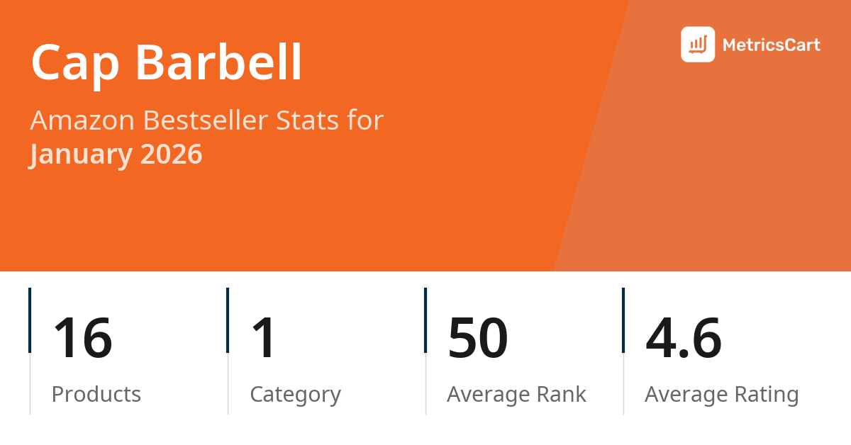 In January 2026, Cap Barbell appeared on Amazon's bestseller lists with 16 unique products across 1 category. These products appeared in the category Sports & Outdoors. The brand's products on the bestseller lists were priced between $10.24 and $259.99, with an average price of $28.06. These bestselling products maintained an average rating of 4.6 based on 158K total ratings from customers who purchased products that appeared on the bestseller lists.