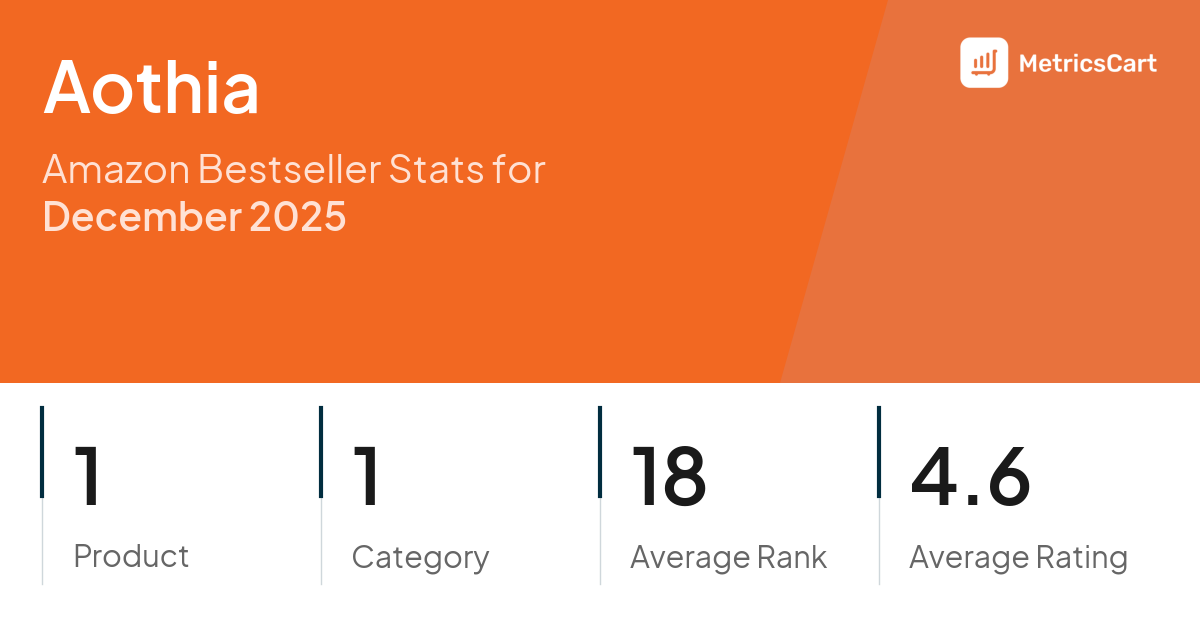 In December 2025, Aothia appeared on Amazon's bestseller lists with 1 unique product across 1 category. These products appeared in the category Office Products. The brand's products on the bestseller lists were priced between $6.96 and $9.99, with an average price of $9.07. These bestselling products maintained an average rating of 4.6 based on 74K total ratings from customers who purchased products that appeared on the bestseller lists.