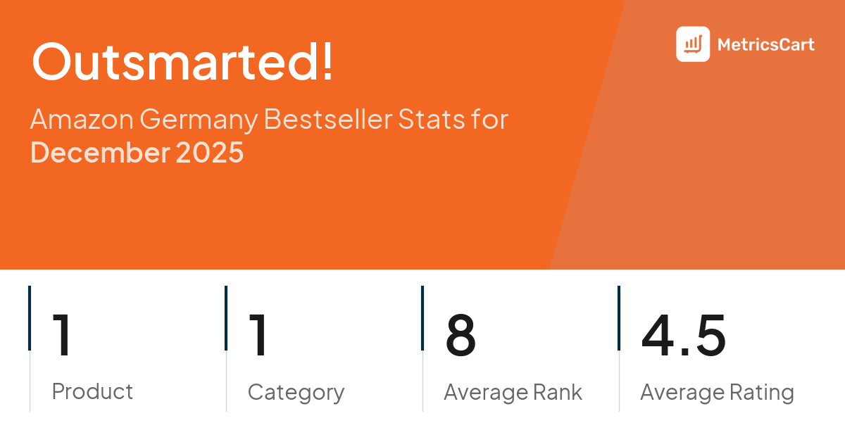 In December 2025, Outsmarted! appeared on Amazon Germany's bestseller lists with 1 unique product across 1 category. These products appeared in the category Toys. The brand's products on the bestseller lists were priced between €39,99 and €49,99, with an average price of €44,99. These bestselling products maintained an average rating of 4.5 based on 9K total ratings from customers who purchased products that appeared on the bestseller lists.