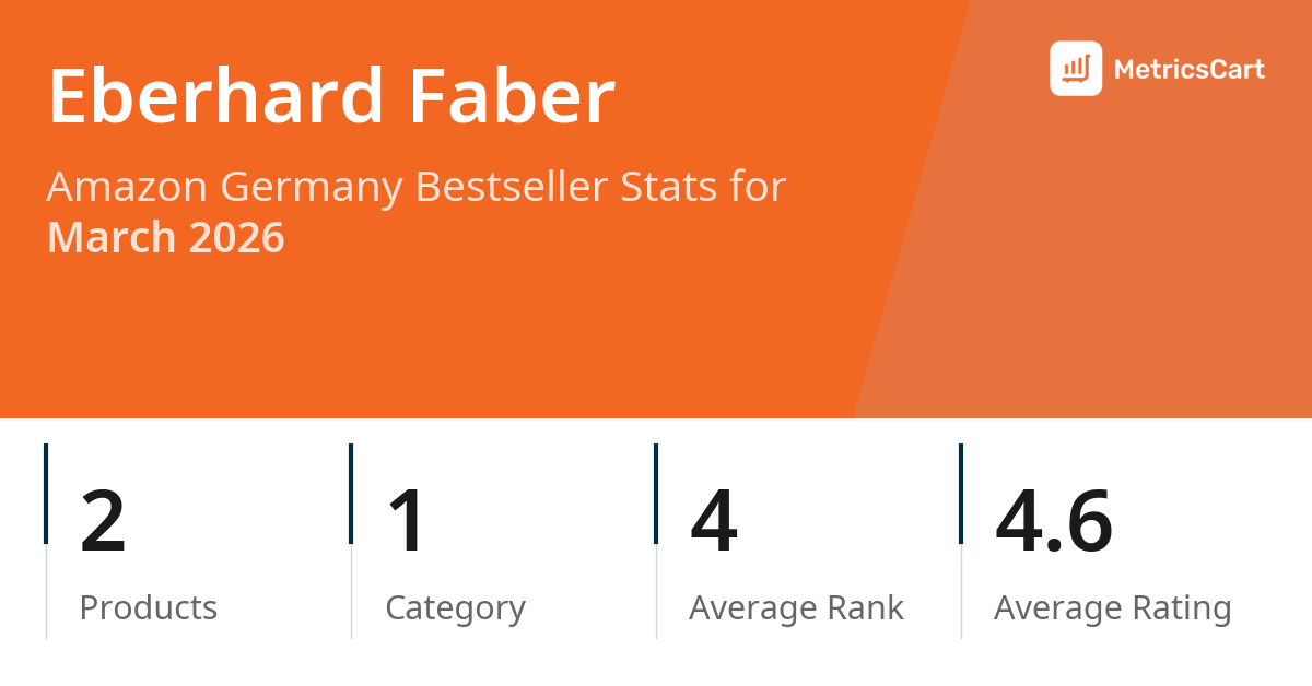 In March 2026, Eberhard Faber appeared on Amazon Germany's bestseller lists with 2 unique products across 1 category. These products appeared in the category Toys. The brand's products on the bestseller lists were priced between €4,99 and €7,50, with an average price of €6,37. These bestselling products maintained an average rating of 4.6 based on 26K total ratings from customers who purchased products that appeared on the bestseller lists.