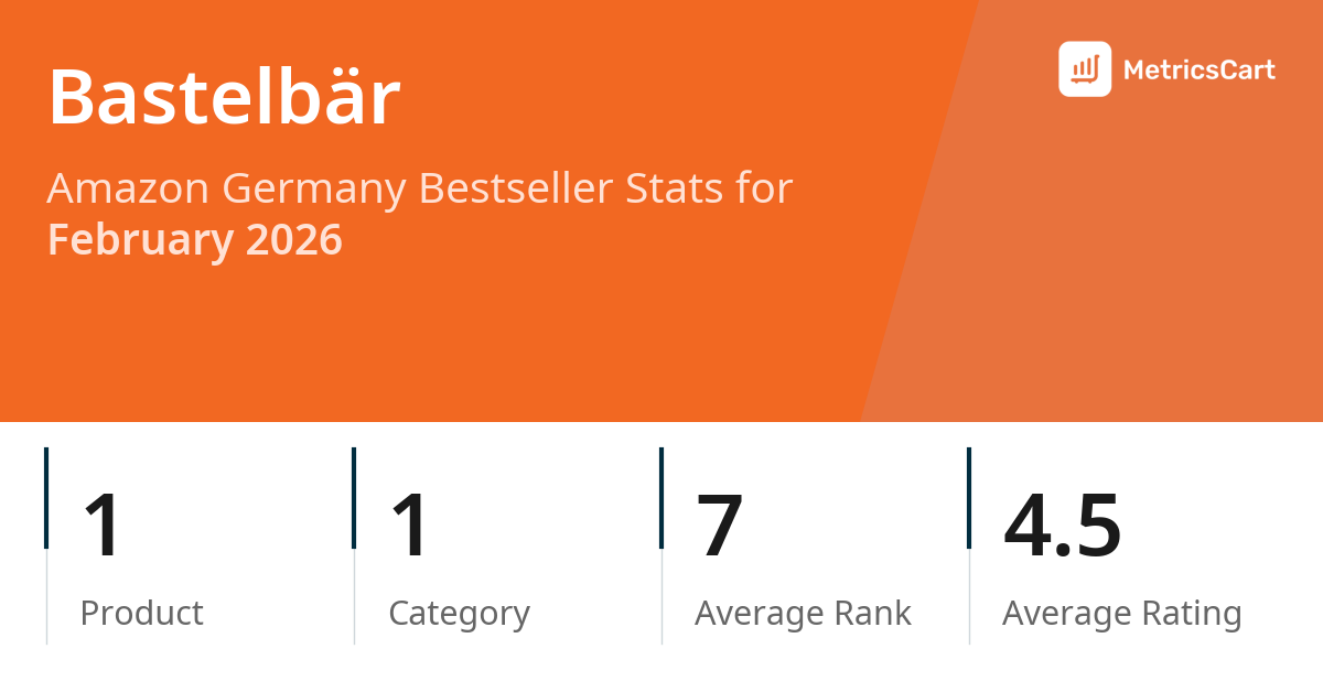 In February 2026, Bastelbär appeared on Amazon Germany's bestseller lists with 1 unique product across 1 category. These products appeared in the category Toys. The brand's products on the bestseller lists were priced between €9,90 and €10,90, with an average price of €10,40. These bestselling products maintained an average rating of 4.5 based on 11K total ratings from customers who purchased products that appeared on the bestseller lists.