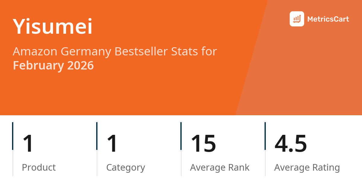 In February 2026, Yisumei appeared on Amazon Germany's bestseller lists with 1 unique product across 1 category. These products appeared in the category DIY & Tools. The brand's products on the bestseller lists had an average price of €6,98. These bestselling products maintained an average rating of 4.5 based on 3K total ratings from customers who purchased products that appeared on the bestseller lists.