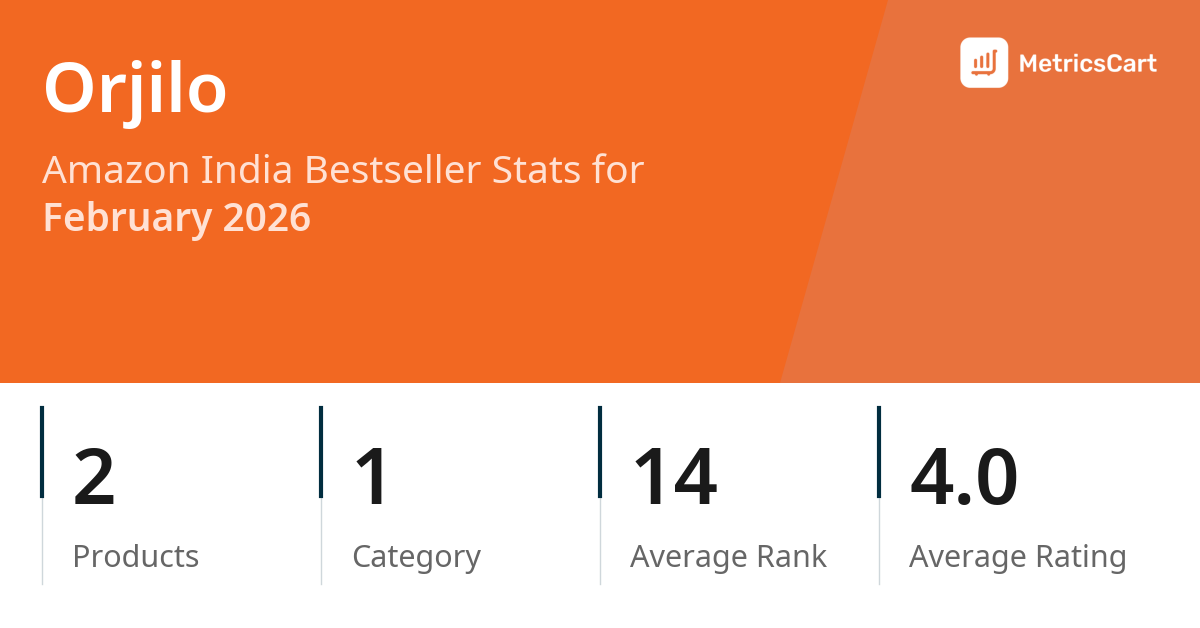 In February 2026, Orjilo appeared on Amazon India's bestseller lists with 2 unique products across 1 category. These products appeared in the category Car & Motorbike. The brand's products on the bestseller lists were priced between ₹297.00 and ₹299.00, with an average price of ₹297.23. These bestselling products maintained an average rating of 4.0 based on 2K total ratings from customers who purchased products that appeared on the bestseller lists.