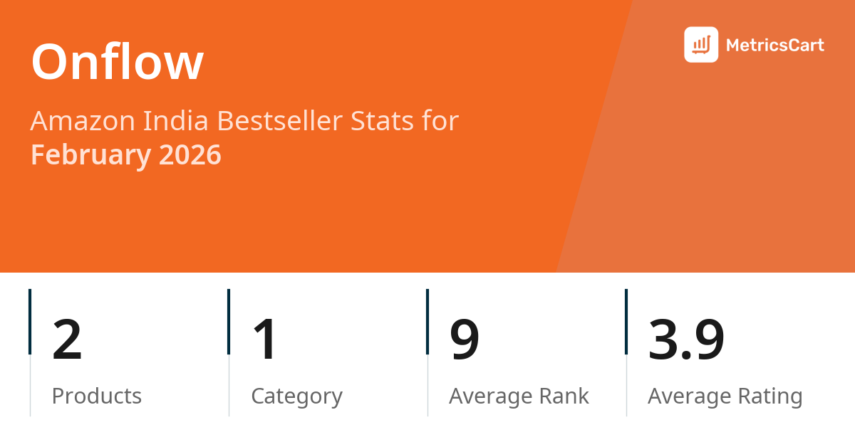 In February 2026, Onflow appeared on Amazon India's bestseller lists with 2 unique products across 1 category. These products appeared in the category Jewellery. The brand's products on the bestseller lists had an average price of ₹299.00. These bestselling products maintained an average rating of 3.9 based on 230 total ratings from customers who purchased products that appeared on the bestseller lists.