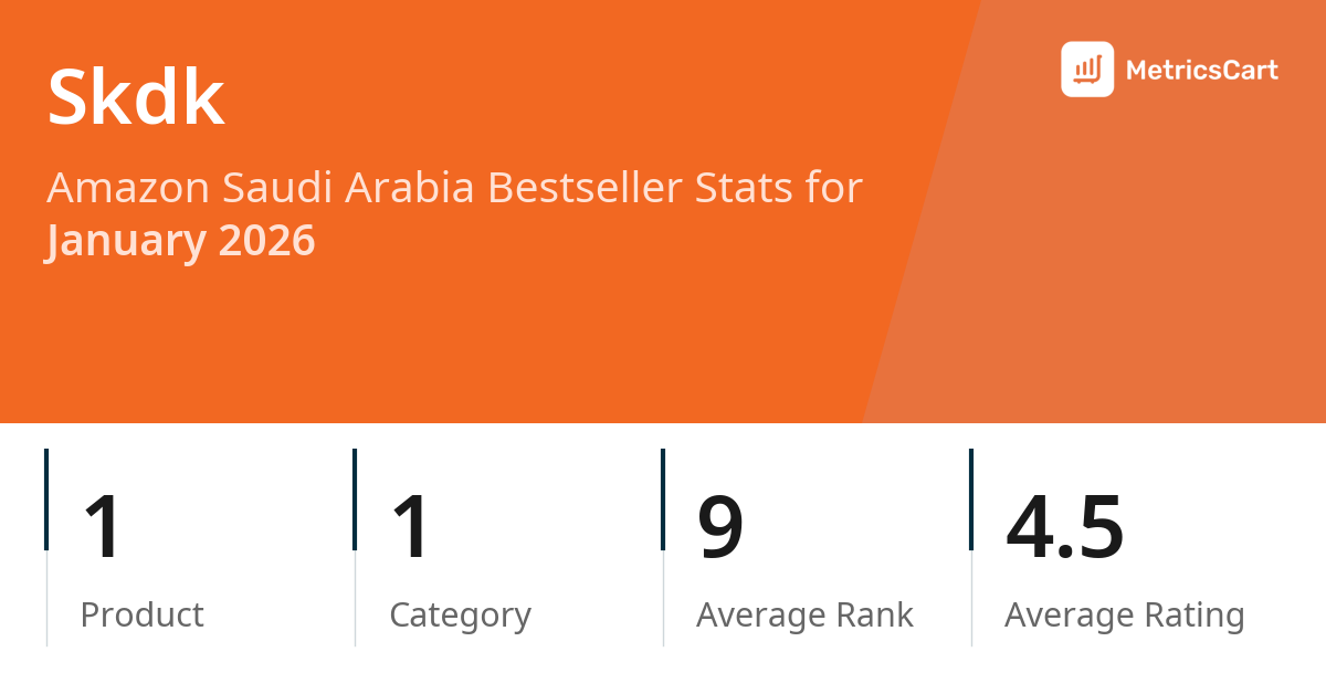 In January 2026, Skdk appeared on Amazon Saudi Arabia's bestseller lists with 1 unique product across 1 category. These products appeared in the category Sporting Goods. The brand's products on the bestseller lists were priced between SAR 30.00 and SAR 49.75, with an average price of SAR 32.86. These bestselling products maintained an average rating of 4.5 based on 5K total ratings from customers who purchased products that appeared on the bestseller lists.