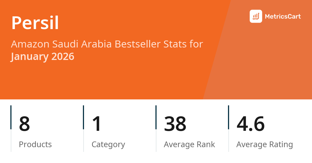 In January 2026, Persil appeared on Amazon Saudi Arabia's bestseller lists with 8 unique products across 1 category. These products appeared in the category Health. The brand's products on the bestseller lists were priced between SAR 32.99 and SAR 58.99, with an average price of SAR 45.15. These bestselling products maintained an average rating of 4.6 based on 14K total ratings from customers who purchased products that appeared on the bestseller lists.
