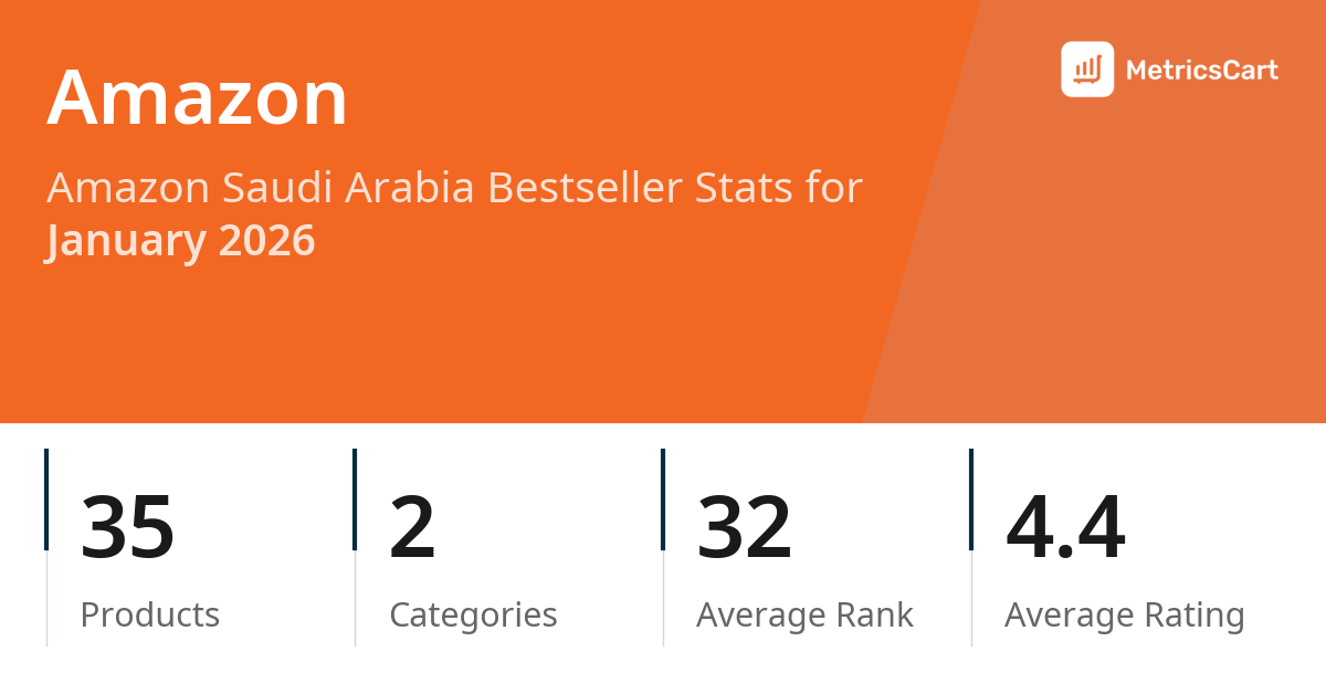 In January 2026, Amazon appeared on Amazon Saudi Arabia's bestseller lists with 35 unique products across 2 categories. These products appeared in categories including Amazon Devices & Accessories and Electronics. The brand's products on the bestseller lists were priced between SAR 79.00 and SAR 1,199.00, with an average price of SAR 444.75. These bestselling products maintained an average rating of 4.4 based on 94K total ratings from customers who purchased products that appeared on the bestseller lists.
