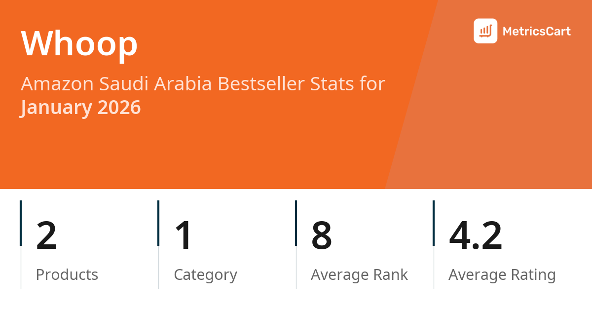 In January 2026, Whoop appeared on Amazon Saudi Arabia's bestseller lists with 2 unique products across 1 category. These products appeared in the category Sporting Goods. The brand's products on the bestseller lists were priced between SAR 1,029.00 and SAR 1,549.00, with an average price of SAR 1,170.82. These bestselling products maintained an average rating of 4.2 based on 4K total ratings from customers who purchased products that appeared on the bestseller lists.