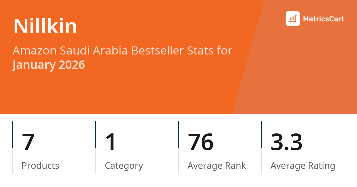In January 2026, Nillkin appeared on Amazon Saudi Arabia's bestseller lists with 7 unique products across 1 category. These products appeared in the category Amazon Devices & Accessories. The brand's products on the bestseller lists were priced between SAR 45.10 and SAR 428.83, with an average price of SAR 251.77. These bestselling products maintained an average rating of 3.3 based on 17 total ratings from customers who purchased products that appeared on the bestseller lists.