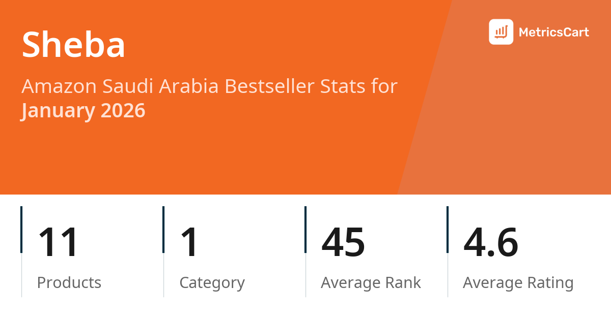 In January 2026, Sheba appeared on Amazon Saudi Arabia's bestseller lists with 11 unique products across 1 category. These products appeared in the category Pet Supplies. The brand's products on the bestseller lists were priced between SAR 9.95 and SAR 218.85, with an average price of SAR 102.18. These bestselling products maintained an average rating of 4.6 based on 5K total ratings from customers who purchased products that appeared on the bestseller lists.