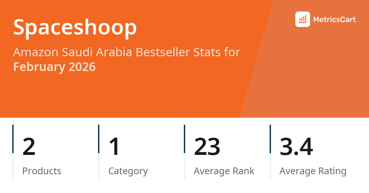 In February 2026, Spaceshoop appeared on Amazon Saudi Arabia's bestseller lists with 2 unique products across 1 category. These products appeared in the category Patio, Lawn & Garden. The brand's products on the bestseller lists were priced between SAR 9.73 and SAR 27.51, with an average price of SAR 21.58. These bestselling products maintained an average rating of 3.4 based on 2K total ratings from customers who purchased products that appeared on the bestseller lists.