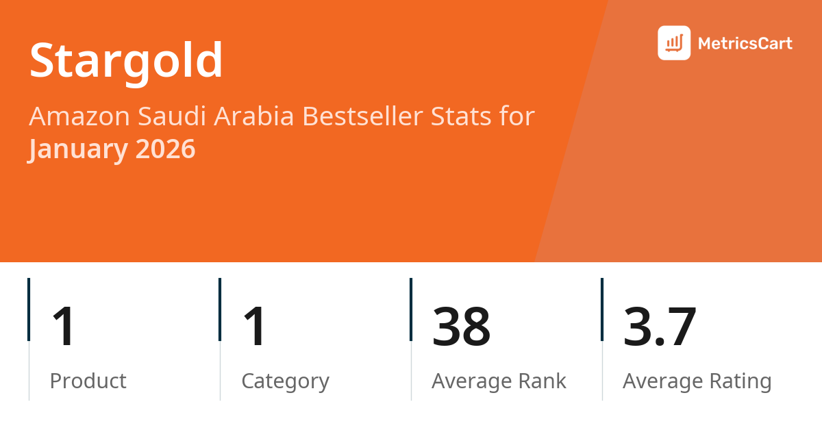 In January 2026, Stargold appeared on Amazon Saudi Arabia's bestseller lists with 1 unique product across 1 category. These products appeared in the category Amazon Devices & Accessories. The brand's products on the bestseller lists were priced between SAR 46.05 and SAR 46.11, with an average price of SAR 46.10. These bestselling products maintained an average rating of 3.7 based on 24 total ratings from customers who purchased products that appeared on the bestseller lists.