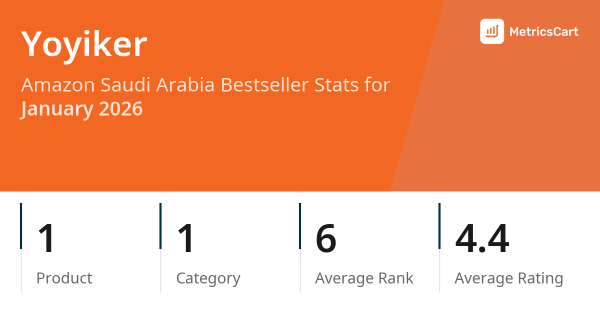 In January 2026, Yoyiker appeared on Amazon Saudi Arabia's bestseller lists with 1 unique product across 1 category. These products appeared in the category Toys. The brand's products on the bestseller lists were priced between SAR 16.90 and SAR 21.50, with an average price of SAR 19.05. These bestselling products maintained an average rating of 4.4 based on 561 total ratings from customers who purchased products that appeared on the bestseller lists.
