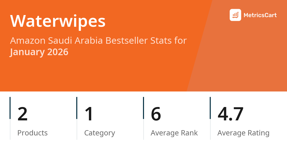 In January 2026, Waterwipes appeared on Amazon Saudi Arabia's bestseller lists with 2 unique products across 1 category. These products appeared in the category Baby Products. The brand's products on the bestseller lists were priced between SAR 160.95 and SAR 219.00, with an average price of SAR 195.18. These bestselling products maintained an average rating of 4.7 based on 29K total ratings from customers who purchased products that appeared on the bestseller lists.