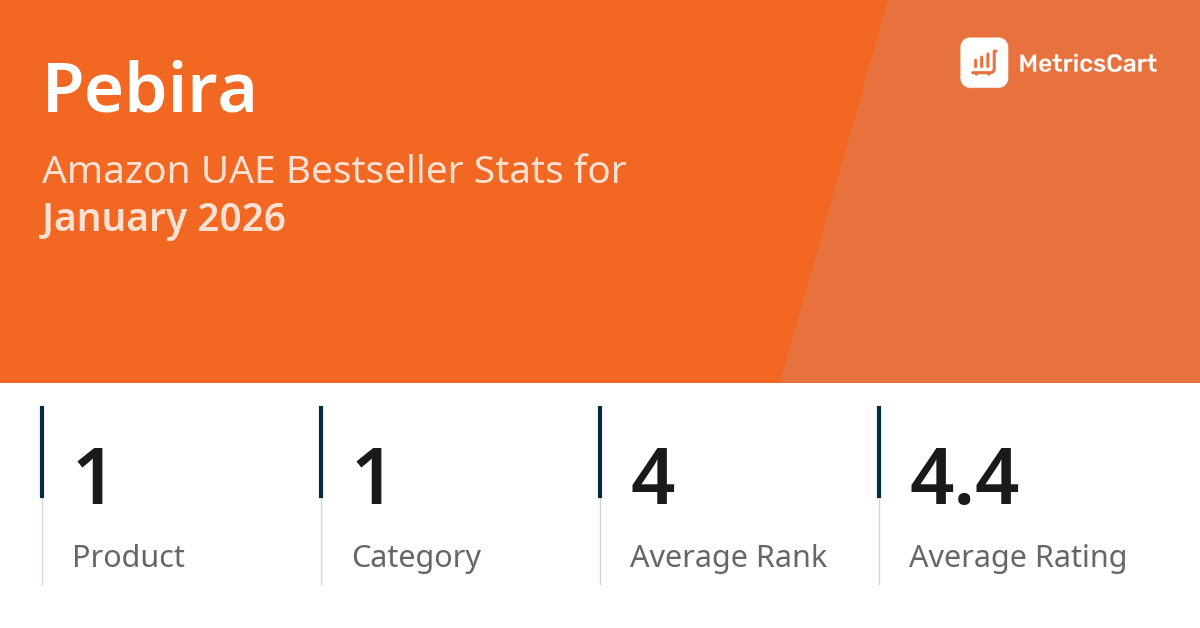 In January 2026, Pebira appeared on Amazon UAE's bestseller lists with 1 unique product across 1 category. These products appeared in the category Toys. The brand's products on the bestseller lists were priced between AED 10.00 and AED 14.31, with an average price of AED 12.23. These bestselling products maintained an average rating of 4.4 based on 8K total ratings from customers who purchased products that appeared on the bestseller lists.