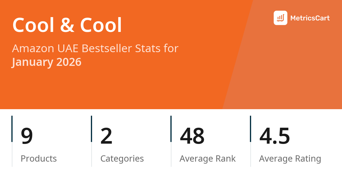 In January 2026, Cool & Cool appeared on Amazon UAE's bestseller lists with 9 unique products across 2 categories. These products appeared in categories including Baby Products and Beauty. The brand's products on the bestseller lists were priced between AED 12.55 and AED 33.60, with an average price of AED 19.04. These bestselling products maintained an average rating of 4.5 based on 3K total ratings from customers who purchased products that appeared on the bestseller lists.