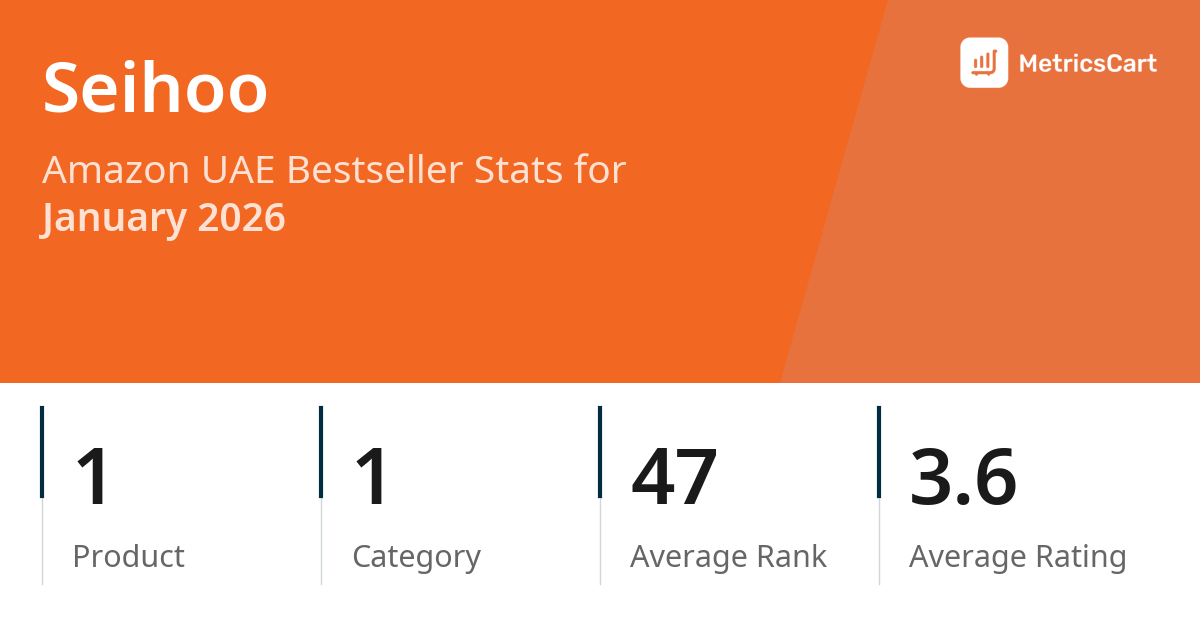 In January 2026, Seihoo appeared on Amazon UAE's bestseller lists with 1 unique product across 1 category. These products appeared in the category Amazon Devices & Accessories. The brand's products on the bestseller lists were priced between AED 15.00 and AED 37.00, with an average price of AED 32.20. These bestselling products maintained an average rating of 3.6 based on 214 total ratings from customers who purchased products that appeared on the bestseller lists.