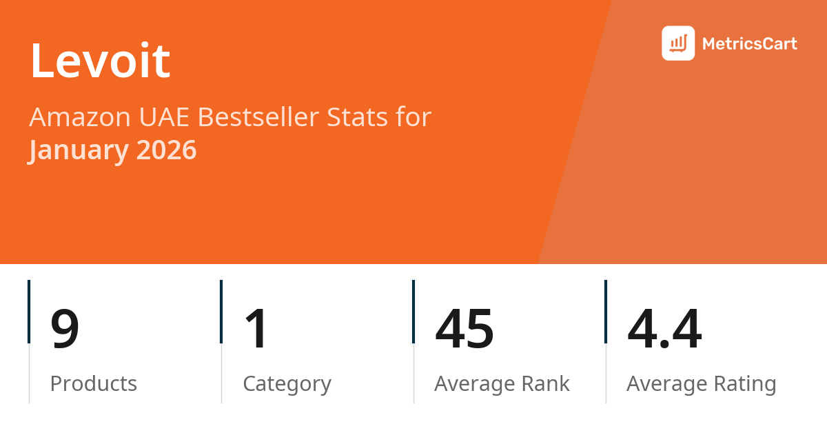 In January 2026, Levoit appeared on Amazon UAE's bestseller lists with 9 unique products across 1 category. These products appeared in the category Kitchen. The brand's products on the bestseller lists were priced between AED 99.00 and AED 1,098.99, with an average price of AED 385.06. These bestselling products maintained an average rating of 4.4 based on 298K total ratings from customers who purchased products that appeared on the bestseller lists.
