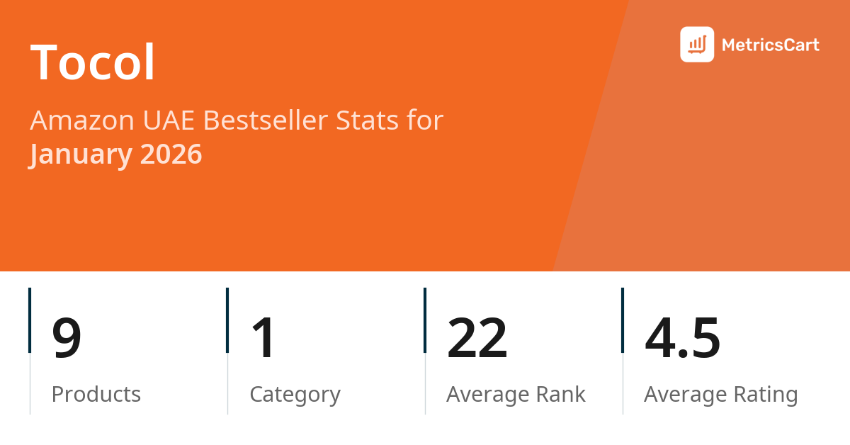 In January 2026, Tocol appeared on Amazon UAE's bestseller lists with 9 unique products across 1 category. These products appeared in the category Mobile Phones & Communication Products. The brand's products on the bestseller lists were priced between AED 35.99 and AED 75.99, with an average price of AED 49.57. These bestselling products maintained an average rating of 4.5 based on 312K total ratings from customers who purchased products that appeared on the bestseller lists.