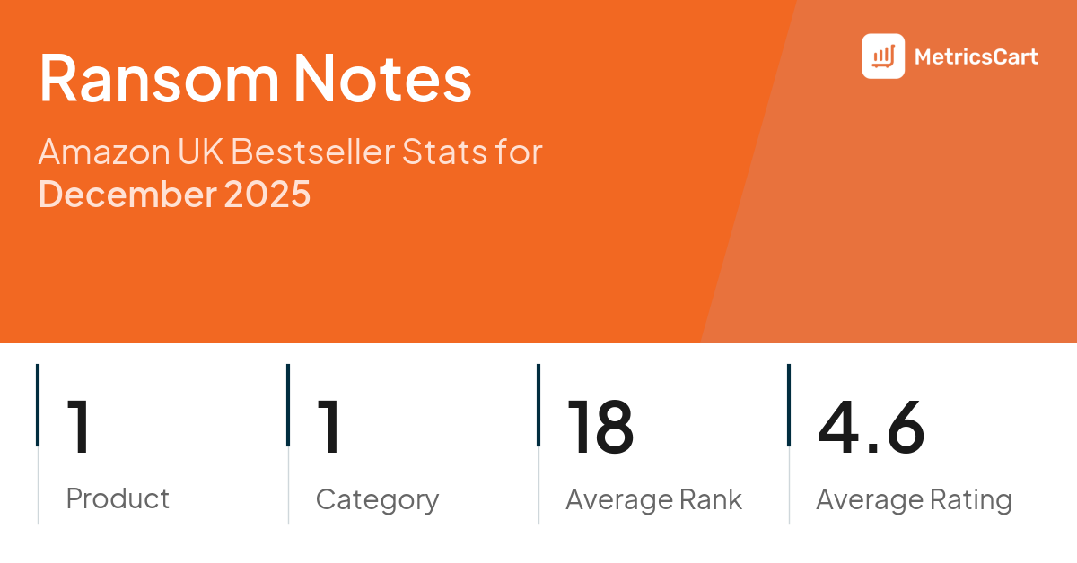 In December 2025, Ransom Notes appeared on Amazon UK's bestseller lists with 1 unique product across 1 category. These products appeared in the category Toys & Games. The brand's products on the bestseller lists were priced between £19.60 and £28.01, with an average price of £26.61. These bestselling products maintained an average rating of 4.6 based on 8K total ratings from customers who purchased products that appeared on the bestseller lists.