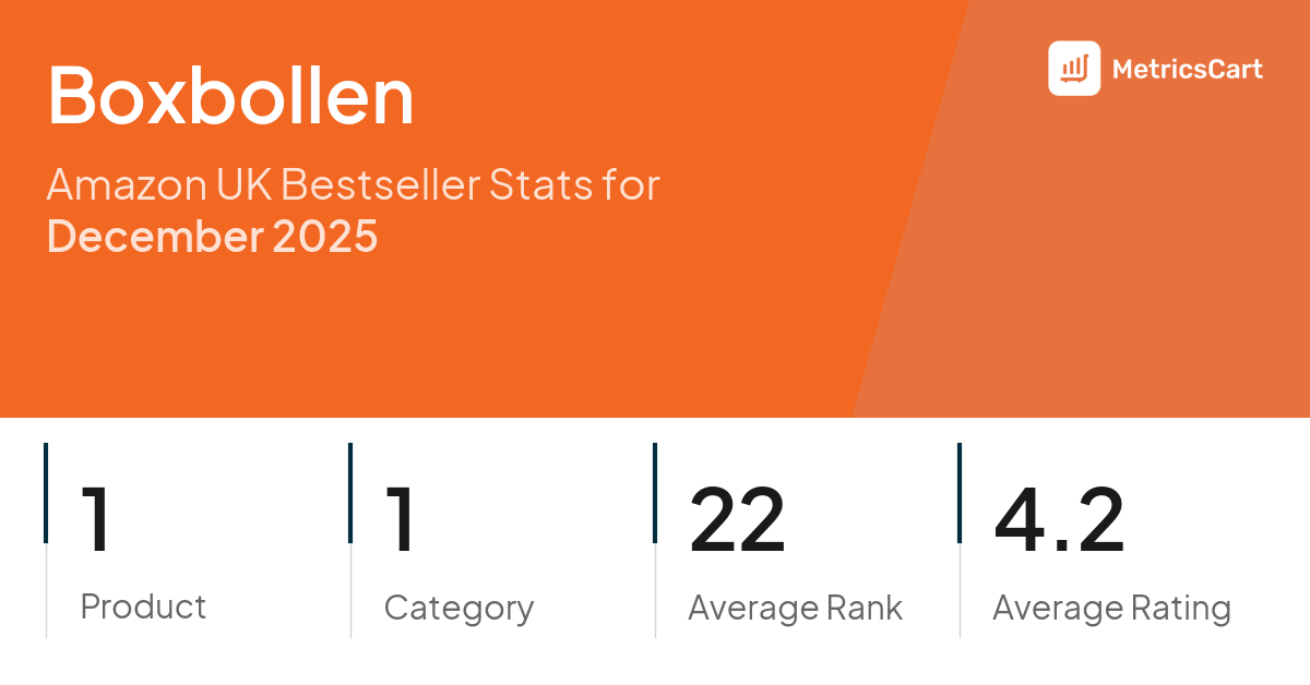 In December 2025, Boxbollen appeared on Amazon UK's bestseller lists with 1 unique product across 1 category. These products appeared in the category Sports & Outdoors. The brand's products on the bestseller lists were priced between £24.40 and £24.49, with an average price of £24.44. These bestselling products maintained an average rating of 4.2 based on 9K total ratings from customers who purchased products that appeared on the bestseller lists.