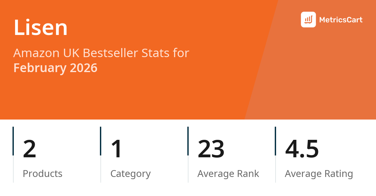 In February 2026, Lisen appeared on Amazon UK's bestseller lists with 2 unique products across 1 category. These products appeared in the category Computers & Accessories. The brand's products on the bestseller lists were priced between £6.99 and £9.98, with an average price of £8.07. These bestselling products maintained an average rating of 4.5 based on 24K total ratings from customers who purchased products that appeared on the bestseller lists.