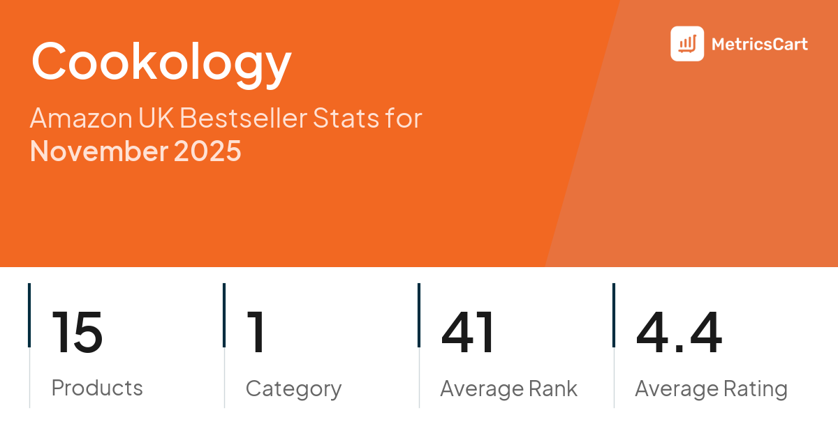 In November 2025, Cookology appeared on Amazon UK's bestseller lists with 15 unique products across 1 category. These products appeared in the category Large Appliances. The brand's products on the bestseller lists were priced between £67.99 and £254.99, with an average price of £117.27. These bestselling products maintained an average rating of 4.4 based on 17K total ratings from customers who purchased products that appeared on the bestseller lists.
