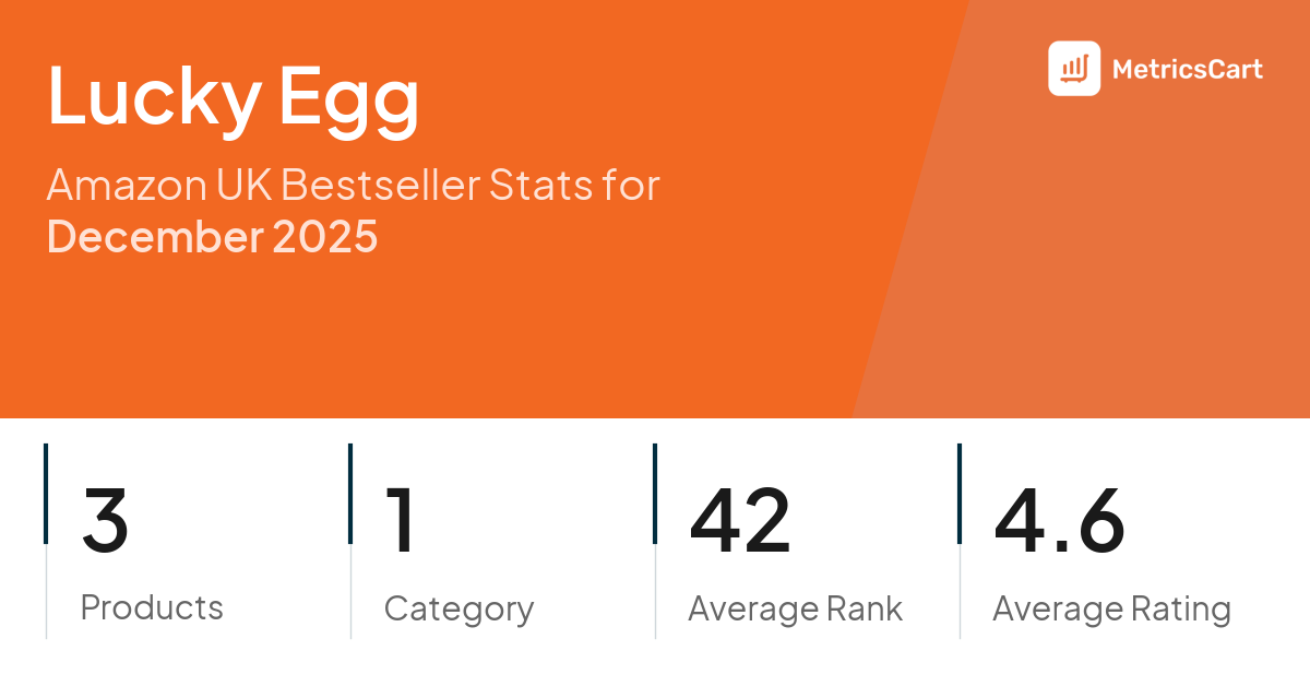 In December 2025, Lucky Egg appeared on Amazon UK's bestseller lists with 3 unique products across 1 category. These products appeared in the category Toys & Games. The brand's products on the bestseller lists were priced between £16.49 and £29.99, with an average price of £22.15. These bestselling products maintained an average rating of 4.6 based on 4K total ratings from customers who purchased products that appeared on the bestseller lists.