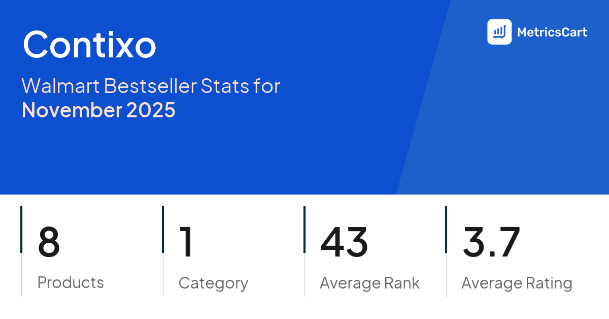 In November 2025, Contixo appeared on Walmart's bestseller lists with 8 unique products across 1 category. These products appeared in the category Toys. The brand's products on the bestseller lists were priced between $17.80 and $74.99, with an average price of $42.71. These bestselling products maintained an average rating of 3.7 based on 25K total ratings from customers who purchased products that appeared on the bestseller lists.