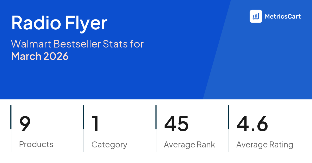 In March 2026, Radio Flyer appeared on Walmart's bestseller lists with 9 unique products across 1 category. These products appeared in the category Toys. The brand's products on the bestseller lists were priced between $29.44 and $98.00, with an average price of $51.47. These bestselling products maintained an average rating of 4.6 based on 19K total ratings from customers who purchased products that appeared on the bestseller lists.
