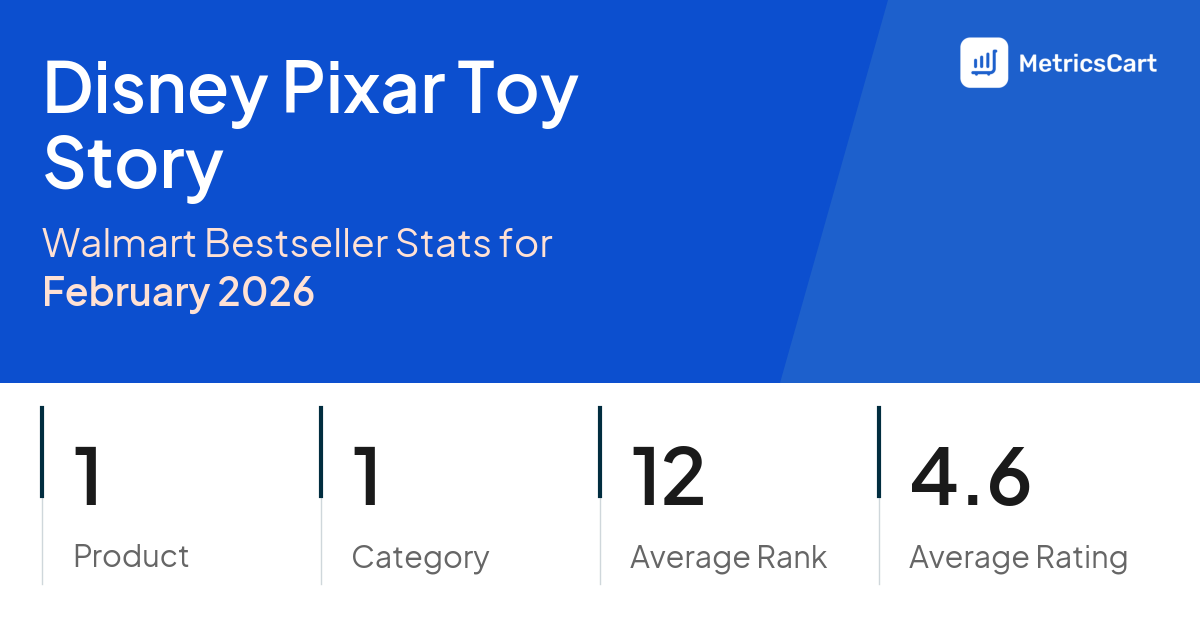 In February 2026, Disney Pixar Toy Story appeared on Walmart's bestseller lists with 1 unique product across 1 category. These products appeared in the category Toys. The brand's products on the bestseller lists had an average price of $24.99. These bestselling products maintained an average rating of 4.6 based on 2K total ratings from customers who purchased products that appeared on the bestseller lists.