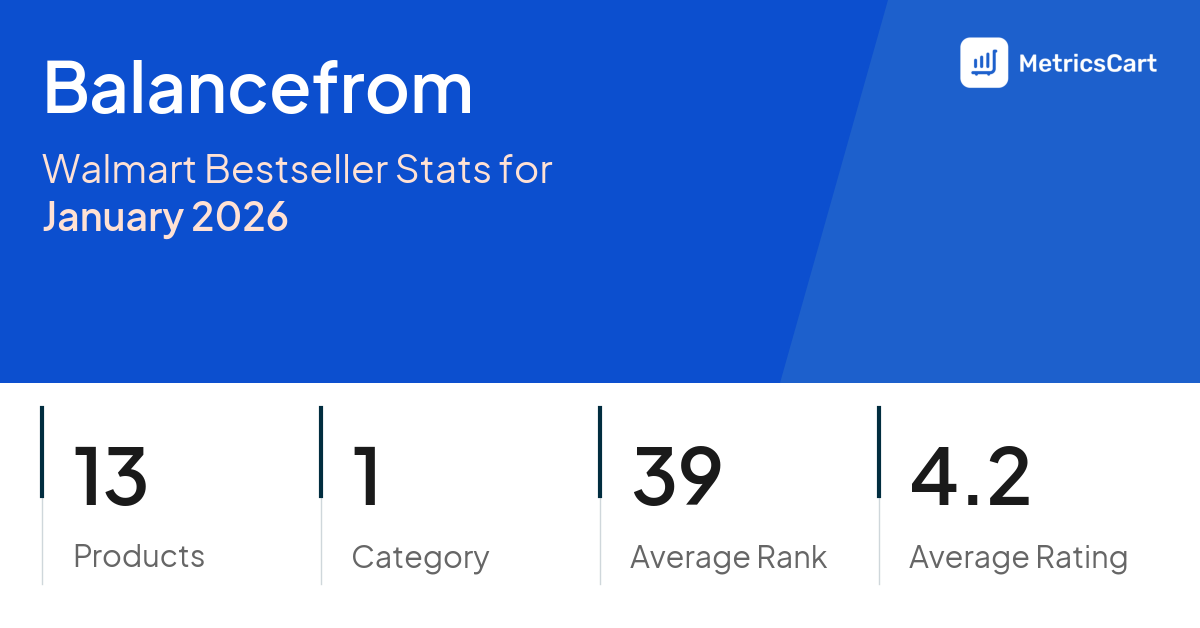 In January 2026, Balancefrom appeared on Walmart's bestseller lists with 13 unique products across 1 category. These products appeared in the category Sports & Outdoors. The brand's products on the bestseller lists were priced between $14.99 and $99.99, with an average price of $34.42. These bestselling products maintained an average rating of 4.2 based on 32K total ratings from customers who purchased products that appeared on the bestseller lists.