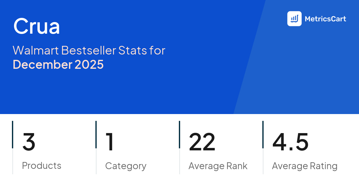 In December 2025, Crua appeared on Walmart's bestseller lists with 3 unique products across 1 category. These products appeared in the category Electronics. The brand's products on the bestseller lists were priced between $85.39 and $169.99, with an average price of $100.86. These bestselling products maintained an average rating of 4.5 based on 9K total ratings from customers who purchased products that appeared on the bestseller lists.